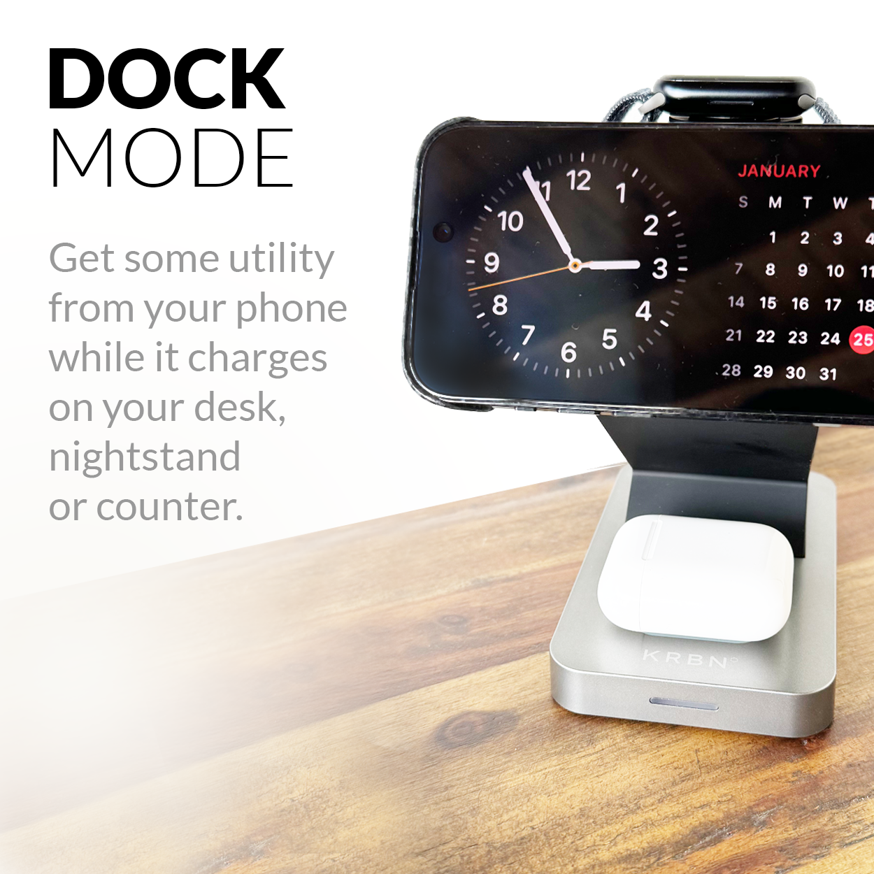 Fast, functional, stylish, uncluttered charge for the devices that power your life. The KRBN Charge is a wireless 3 in 1 fast charging, magnetic station to safely and effortlessly charge your iPhone, Airpods and Apple Watch simultaneously in your home or office. Ditch the cords and elevate your space with this modern, compact and functional charging station.